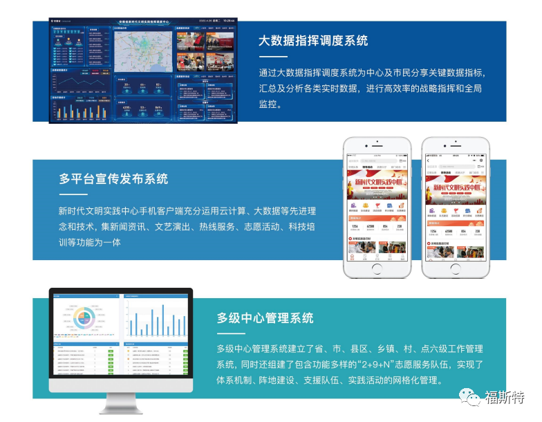 安徽福斯特信息技術(shù)有限公司持續(xù)助力新時代文明實踐中心建設(shè),充分利用大數(shù)據(jù)、云計算、移動互聯(lián)網(wǎng)等新一代信息技術(shù),打造新時代文明實踐中心云平臺,完善平臺動員、整合、引導(dǎo)、服務(wù)、創(chuàng)新和保障能力,實現(xiàn)新時代文明實踐中心的可持續(xù)運營。